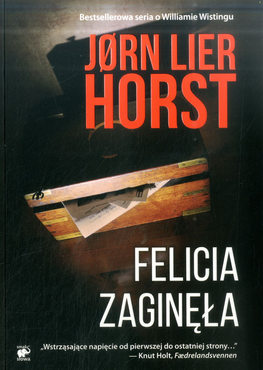 Tytuł: „Felicia zaginęła” Tytuł oryginału: „Felicia Forsvant” Autor: Jørn Lier Horst Wydawnictwo: Smak Słowa Cykl: William Wisting (tom II) Przełożyła: Milena Skoczko Korekta: Anna Mackiewicz Projekt okładki: Agnieszka Karmolińska Wydanie: I Oprawa: miękka (ze skrzydełkami) Liczba stron: 340 Data wydania: 16.08.2017 ISBN: 978-83-65731-17-3 Źródło –skrzydło książki.