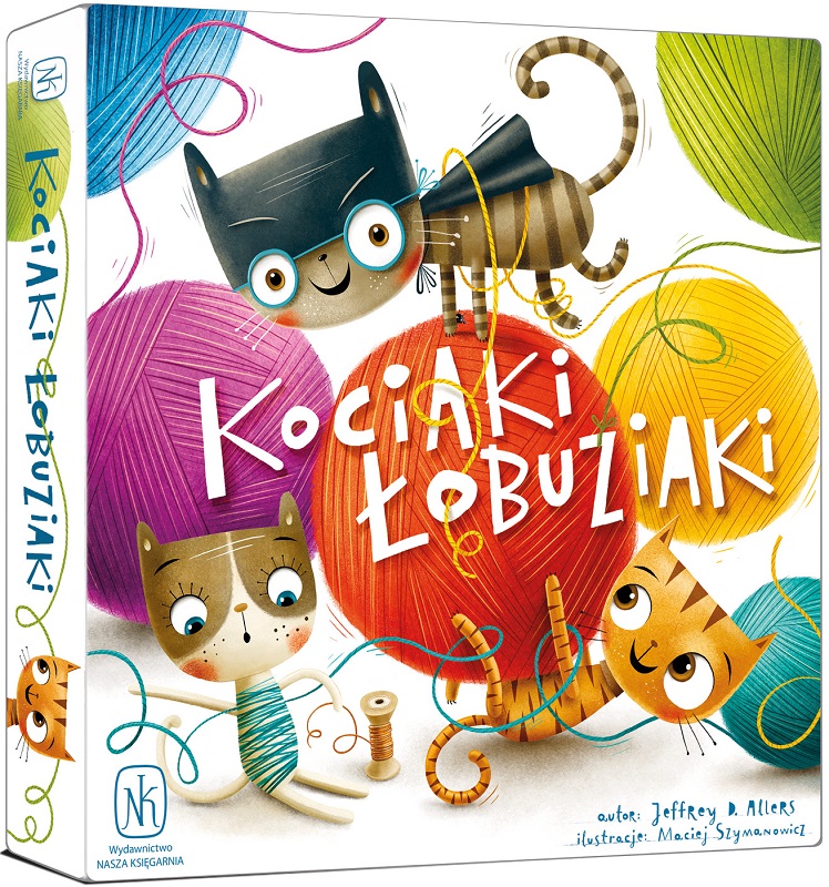 Kociaki łobuziaki / autor: Jeffrey D. Allers, ilustracje: Maciej Szymanowicz. - Warszawa-Wesoła : Wydawnictwo Nasza Księgarnia, ©2018. - 1 gra (1 znacznik gracza rozpoczynającego, 4 sznurki, 4 szpulki, 50 żetonów zabawek, 20 płytek mebli, 4 plansze z wycięciami na sznurki) : pudełko kartonowe, 30x30x5 cm.